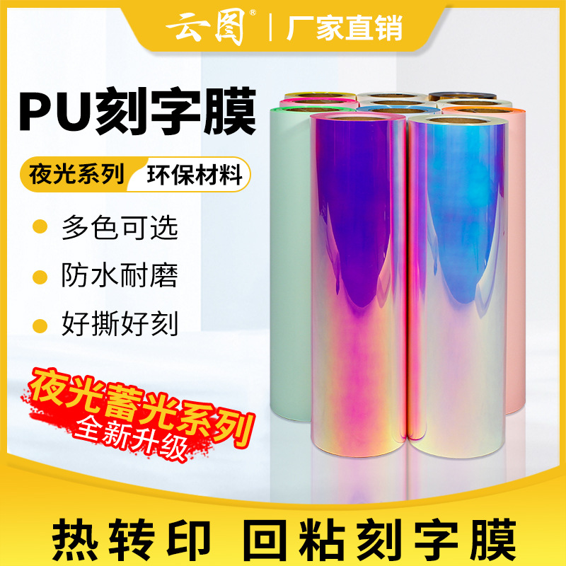 Pu夜光彫刻膜蓄光回粘熱転写膜熱転写機専用反射膜服装熱転写鏡面材料