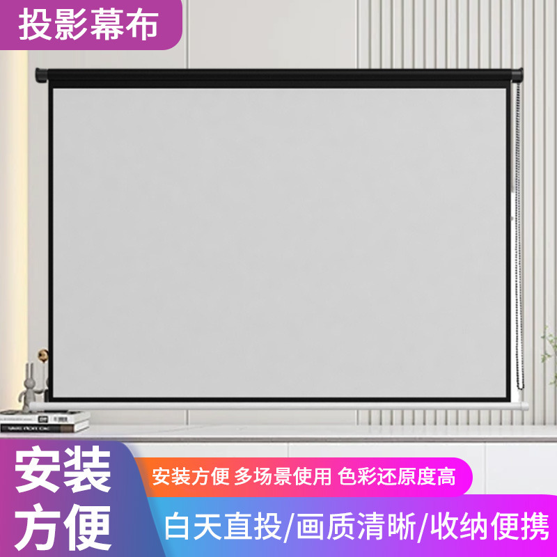 ハンドプルローラーシャッタープロジェクターカーテン 60-150inch 壁掛けホームオフィス手動カーテン投影スクリーン