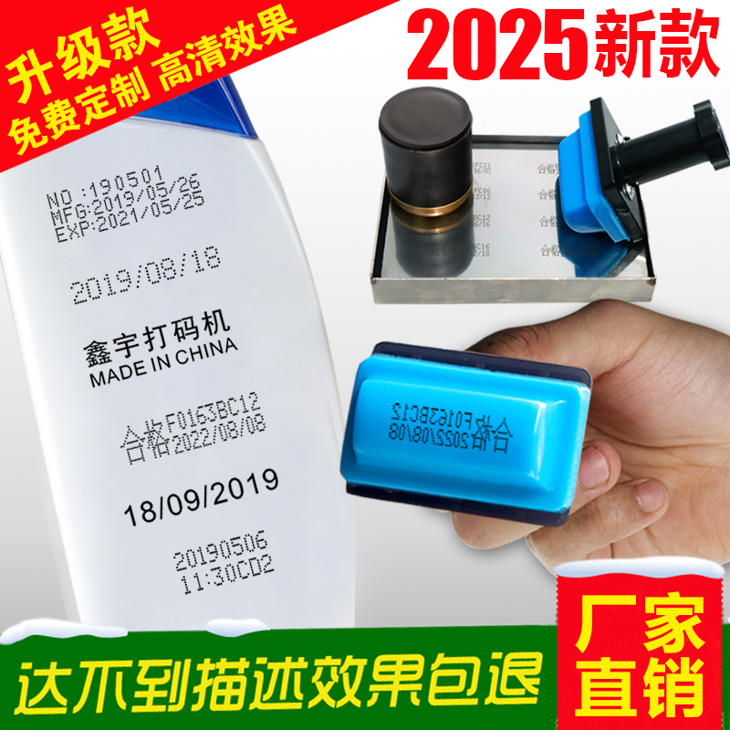 鑫宇は手持ちで生産日のスタンプマシンの化粧品を打ちます。