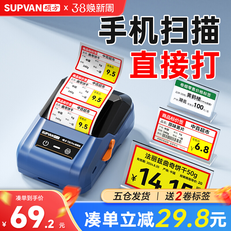 硕方T50pro/80Sスーパー価格ラベルプリンタたばこ価格ラベル小型感熱商品価格ラベル