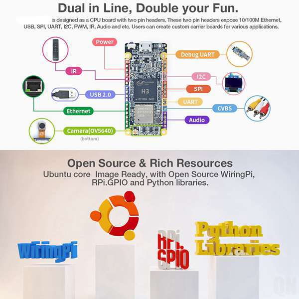 [NanoPi Duo2] 超小型、標準、Allwinner H3+、IOT 開発ボード、UbuntuCore を実行