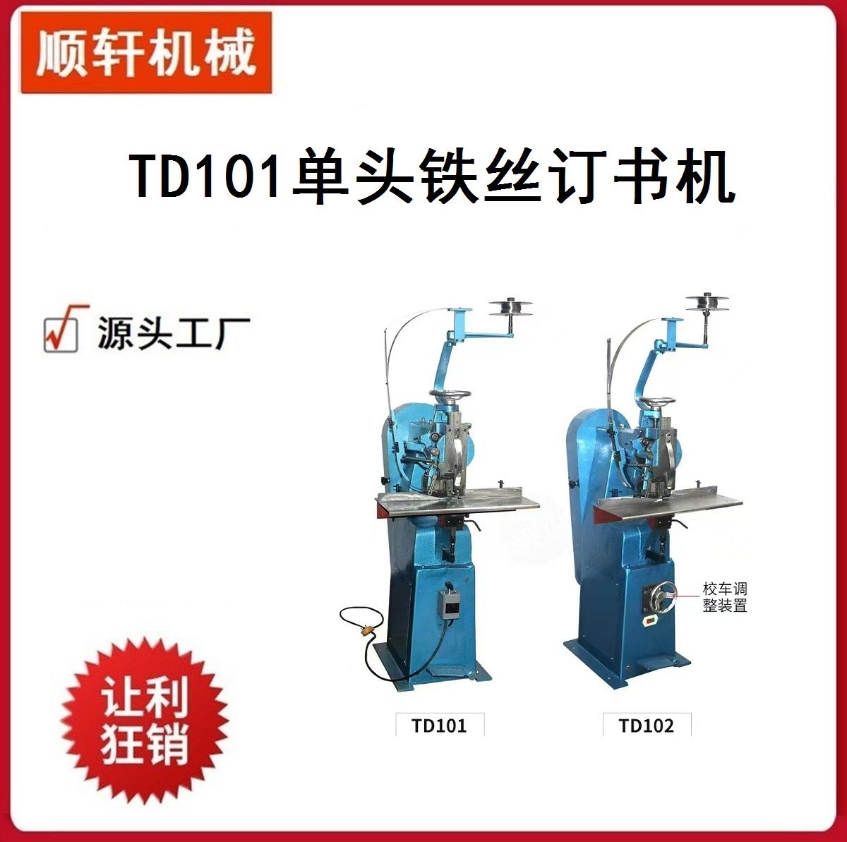 メーカーはTD101単頭の針金ホッチキス、宿題帳製本機を供給している