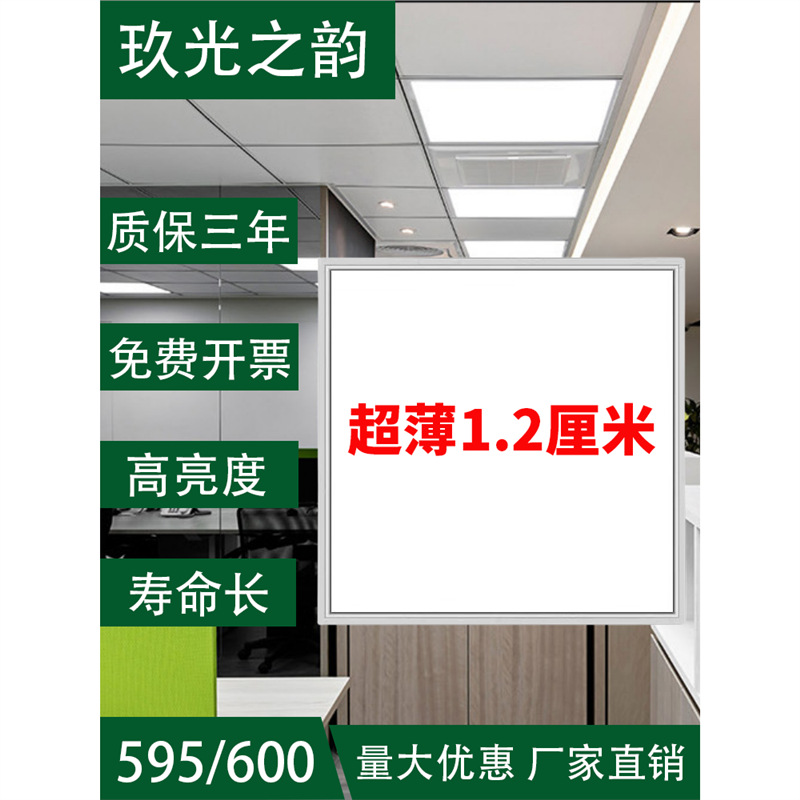 明装LEDフラットライト厨房天井灯オフィス統合600天井led埋め込み型フラットパネル