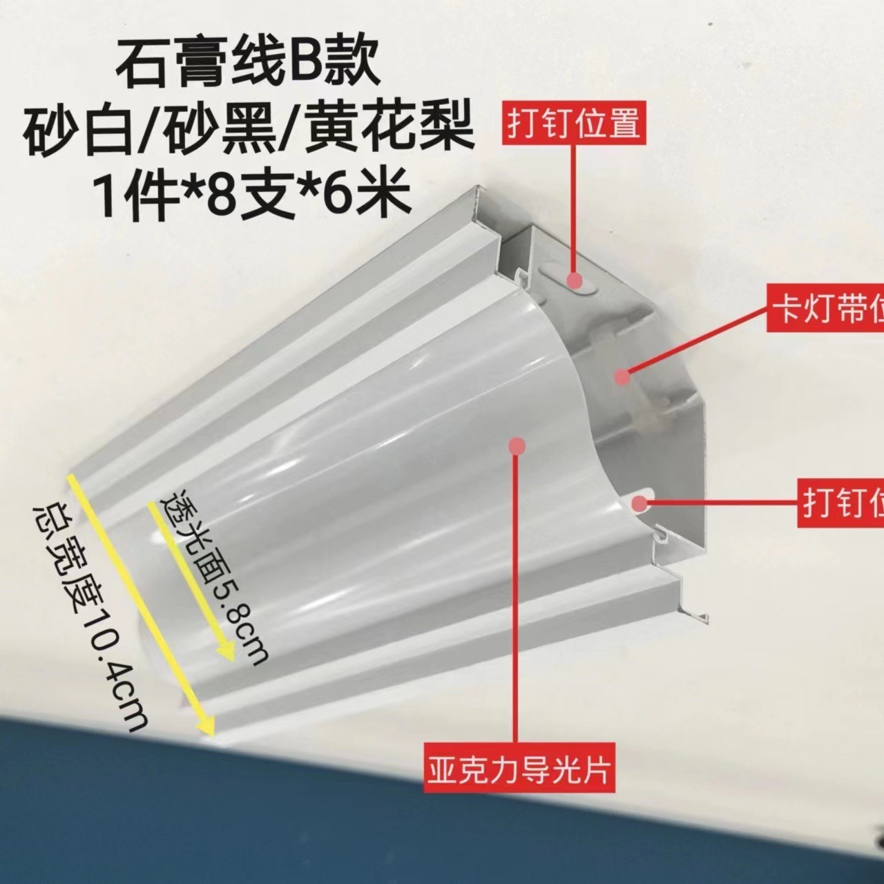 吊り天井の発光の一番上の角線の客間を統合して、溝を入れないで石膏の線をまねることができます。
