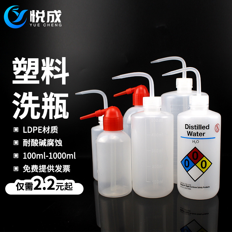プラスチック洗浄瓶エルボ洗浄瓶250 500 1000ml白頭赤頭洗浄瓶ブロー瓶