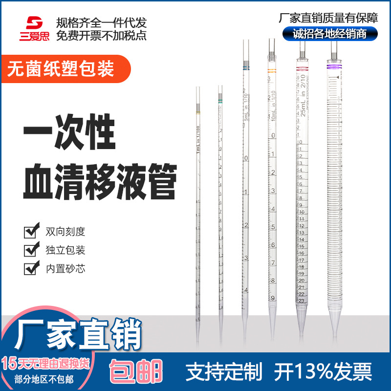三愛思血清移液管独立無菌包装1-50ml化学使い捨てプラスチックストローリングスケール
