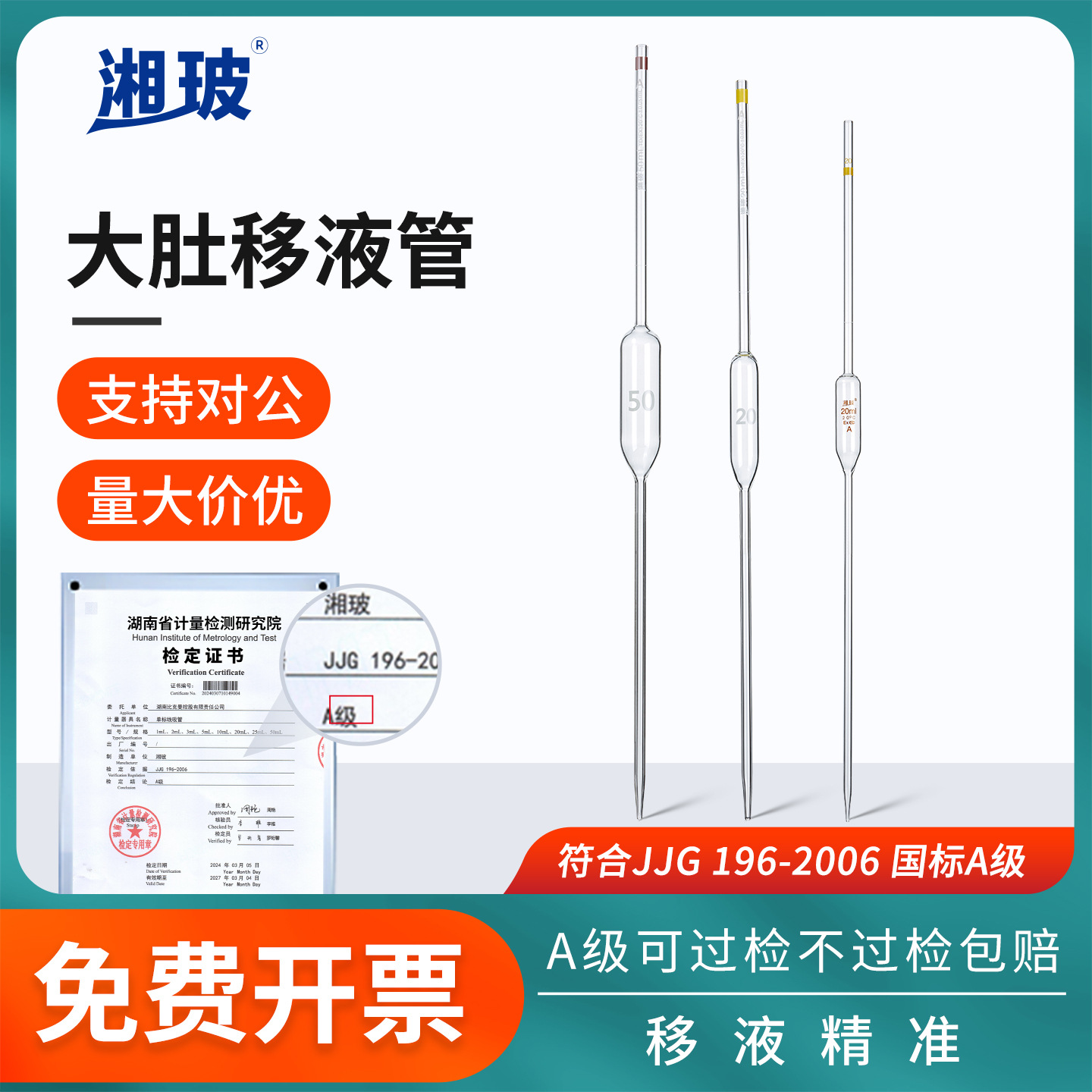湘ガラス大腹ピペット太い腹ピペット実験室単標線ピペット目盛りピペット1ml 2ml