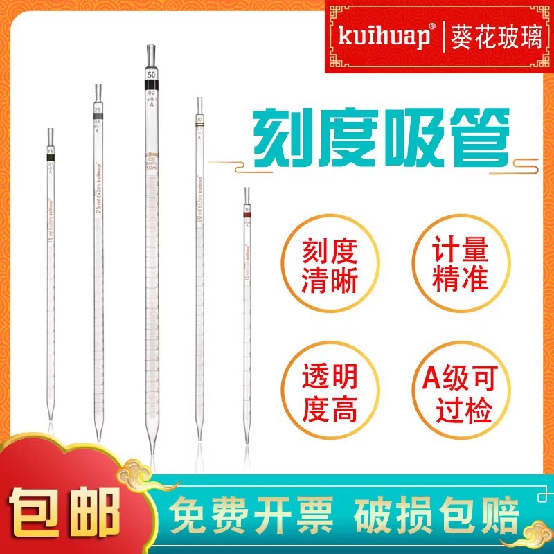 A級リングスケールストローガラスピペット実験室スポイト吸引量サンプリング管実験室測定器検査済み