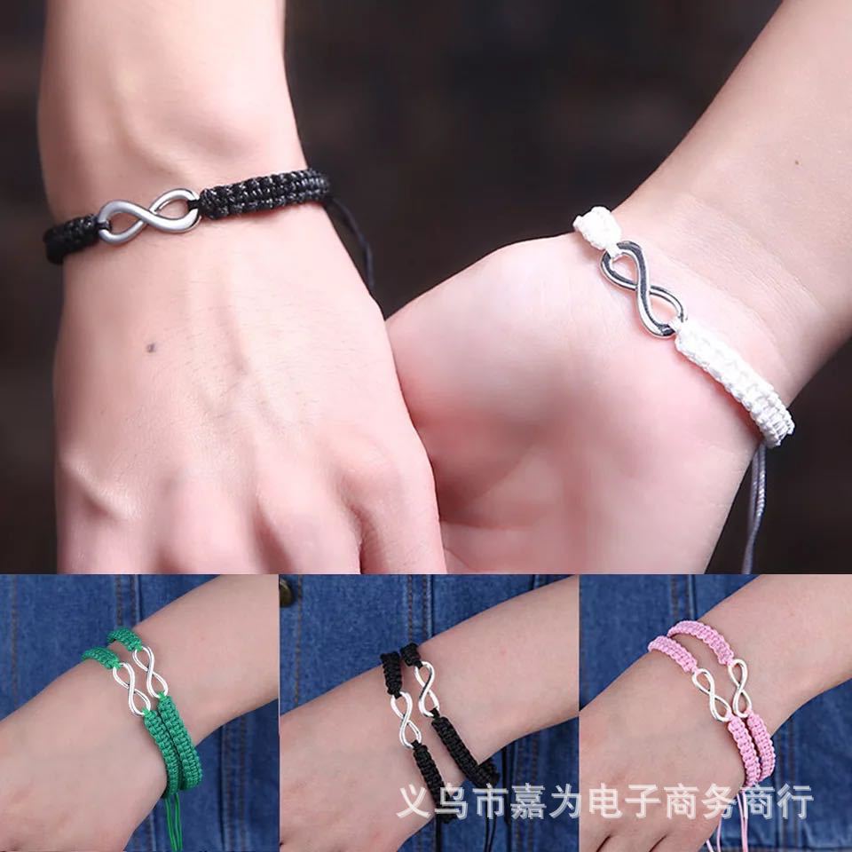 クロスボーダーの人気手織り8字無限愛平結ブレスレット男女友情カップル白黒調節可能な手綱
