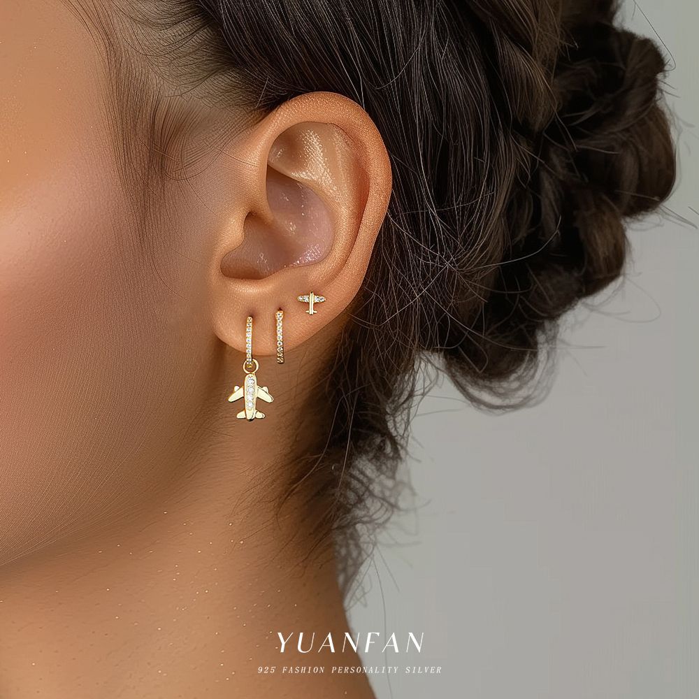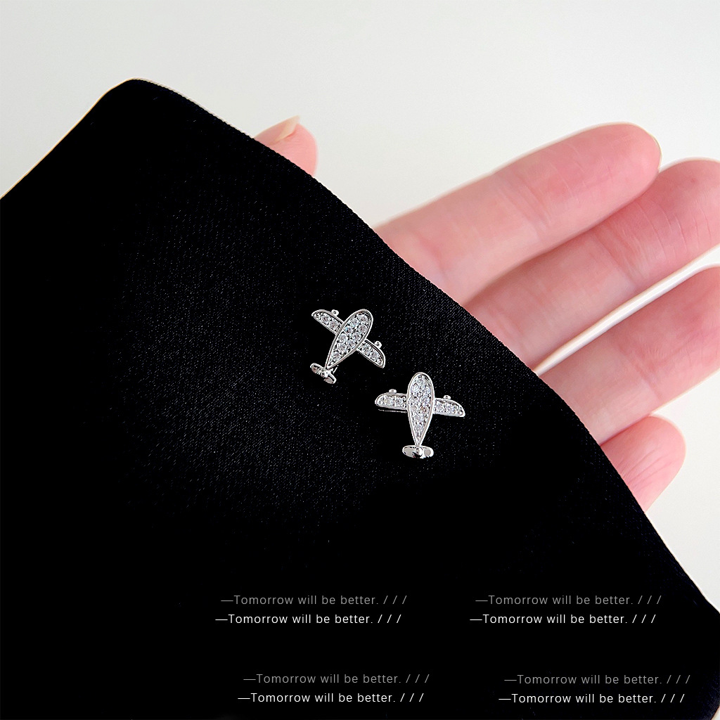 S925銀針はジルコンの小型飛行機のピアスの個性的なデザイン感がシンプルでファッション的なイヤリングの高級感があります。