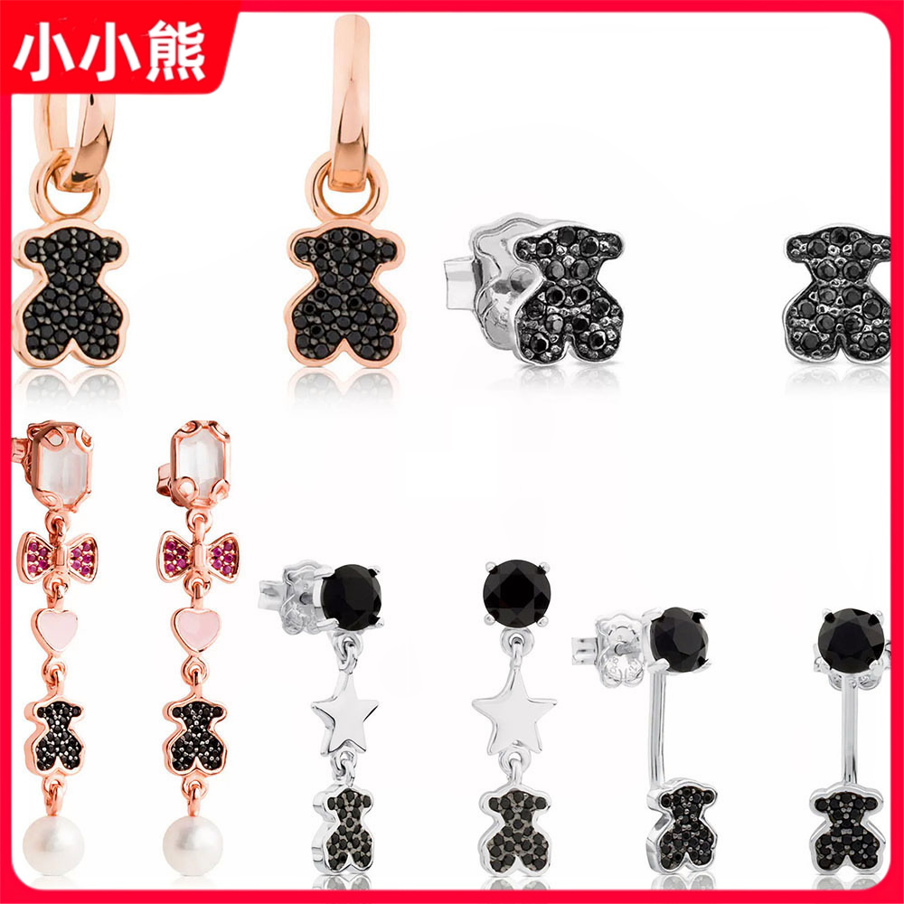 熊家925純銀蝶結び愛熊宝石ピアス女子高級感ファッションイヤリングins風耳飾り