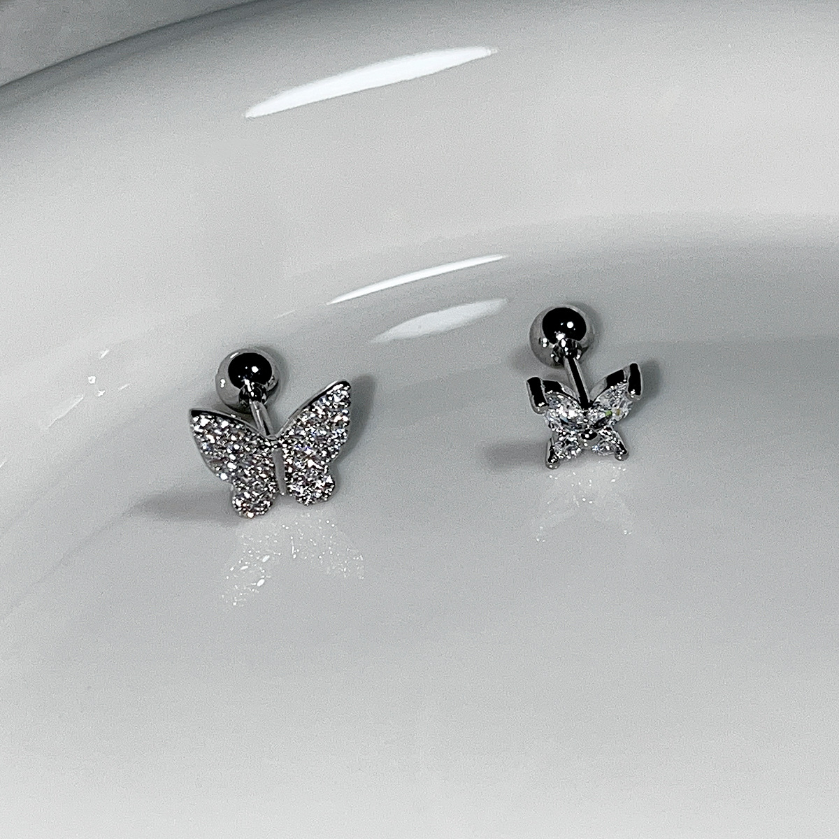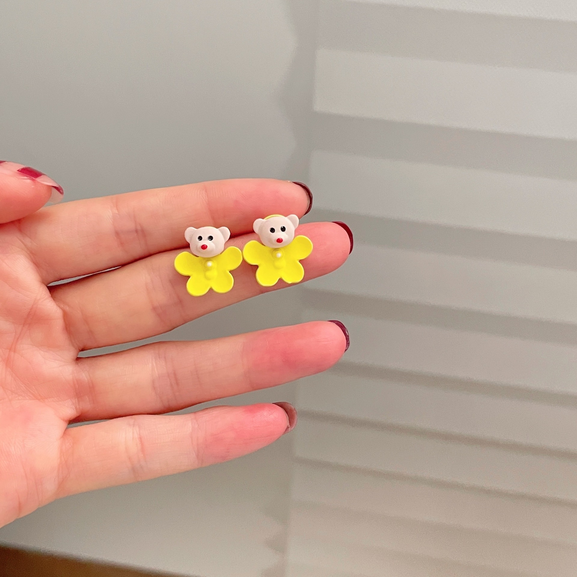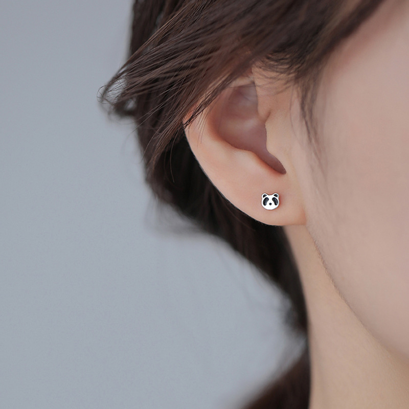 韓国版のかわいい熊のピアスは非対称です。