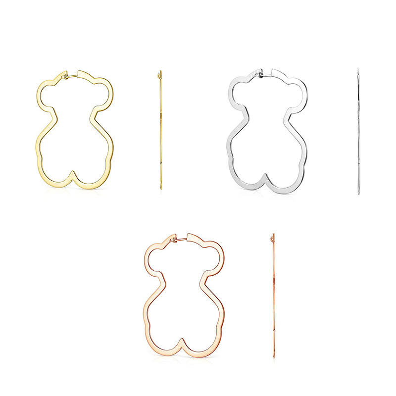 桃糸熊S925純銀シンプル幾何学熊イヤリング大輪高級百合クロスボーダー耳輪スペイン耳飾り