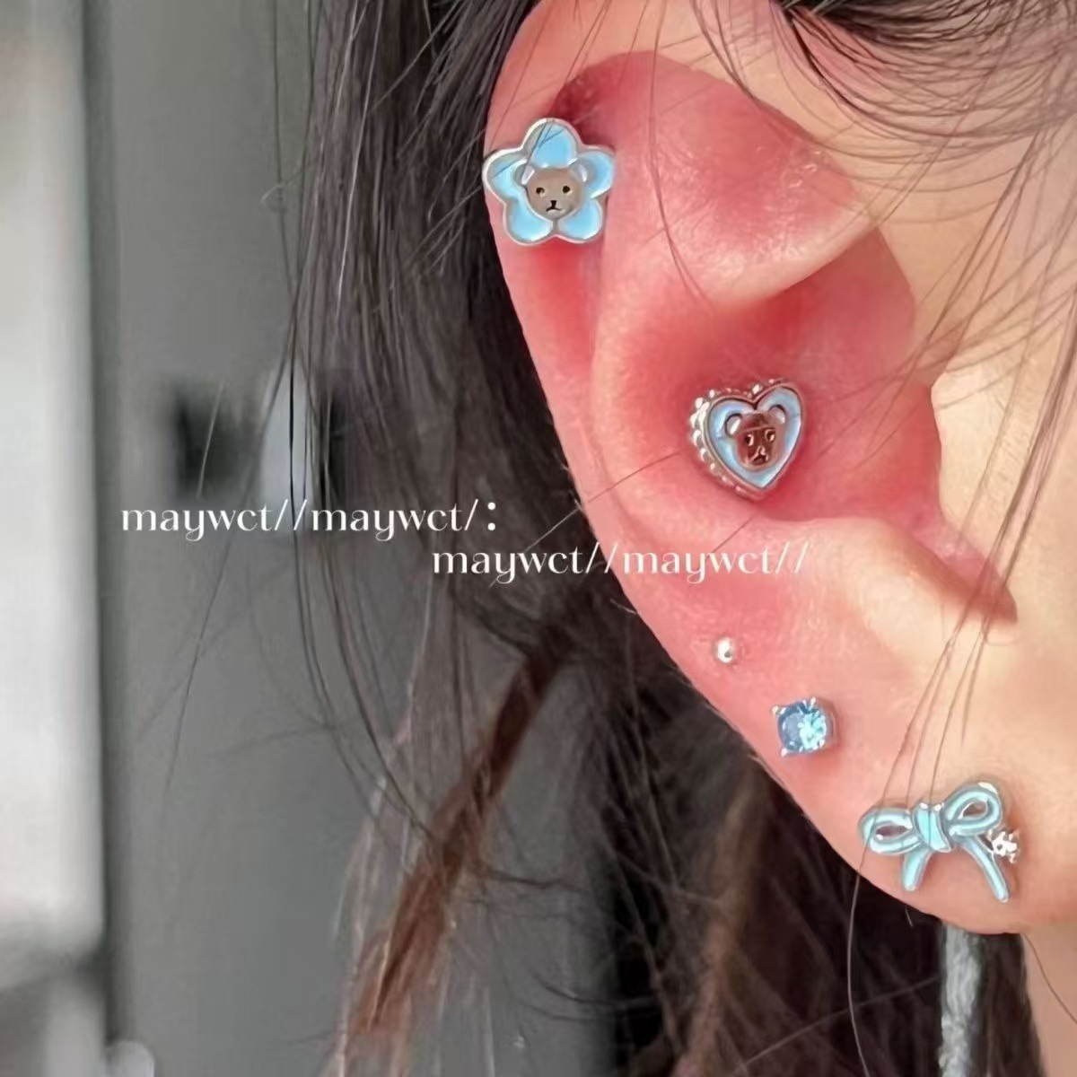 かわいいマカロンの青い愛の小さい花の熊の蝶結びのピアスの高級感の平底の耳の骨のピアスのアクセサリーの女性