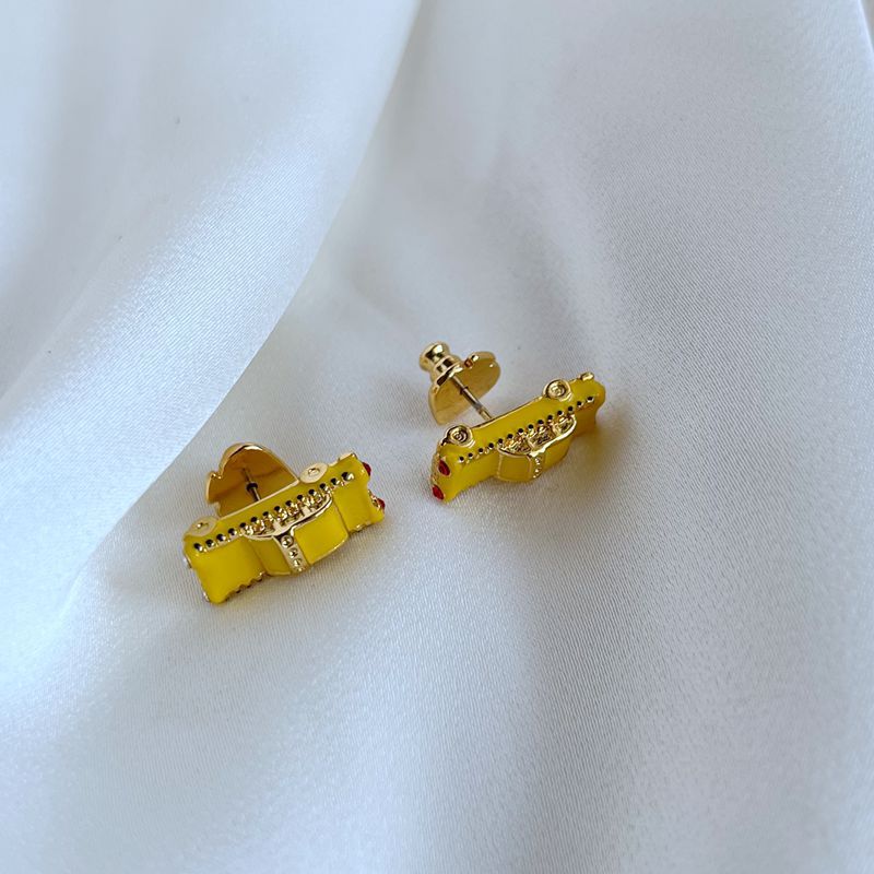 欧米のファッションブランドのジルコンはエナメルの釉薬の小さい自動車の形のピアスを象眼します。