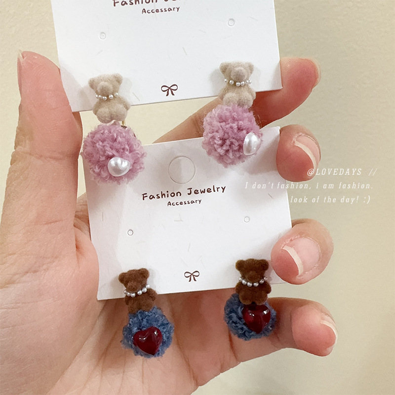 韓国の秋冬のぬいぐるみの熊の毛玉のイヤリング