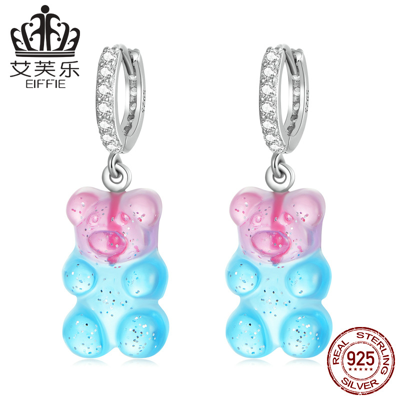 艾芙楽ファッション夢幻純銀s925キャンディー熊耳ボタンカラー樹脂ジルコン動物耳釘イヤリング
