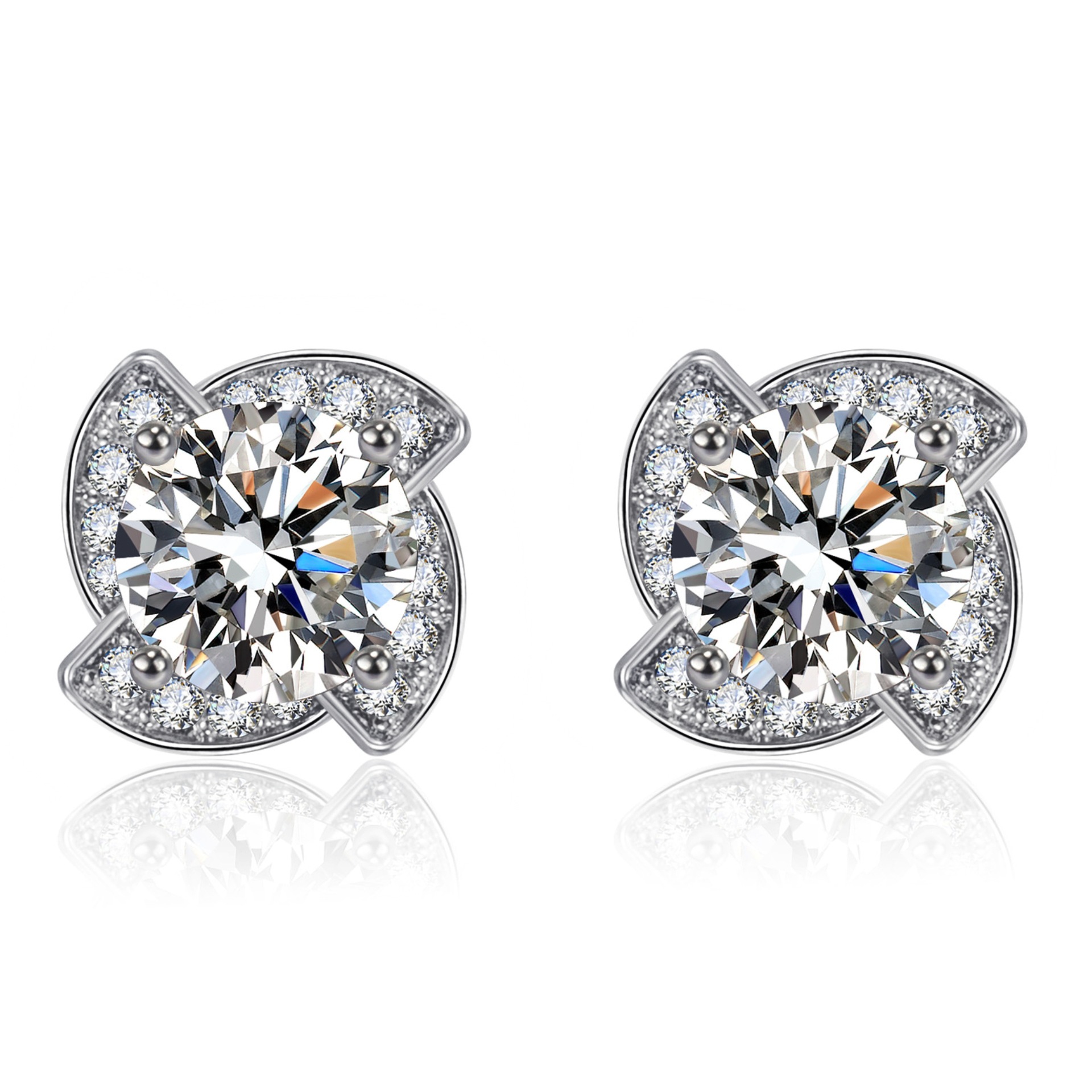 2カラットの豪華なマイクロモザイク莫桑石ジルコン四葉草ピアス気質ファッション回転風車カラードリルピアス