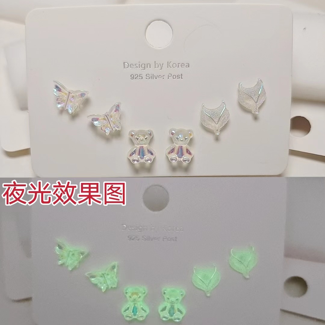 夜光のピアスはアレルギー防止の透明なプラスチックの耳の針の樹脂の熊の蝶の鹿の女子学生はイヤリングの耳飾りが好きです。