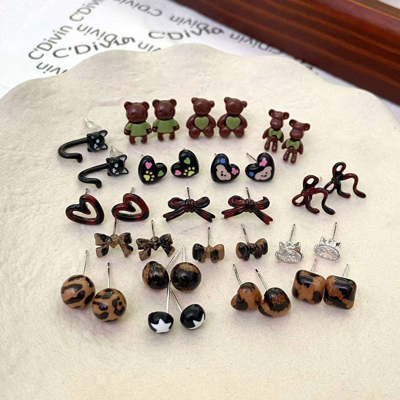 秋冬のヒョウ柄の蝶結びの愛の熊のピアスの高級感の小さい大衆の百合のイヤリングの女性の復古のかわいい耳飾り