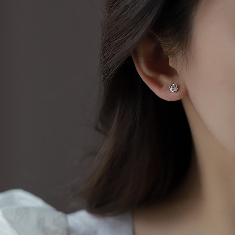 白ドリルの孔明錠のピアスの女性の小さい大衆の精巧なミニの花のボールのイヤリングの幾何学の立体の立体のジルコンのボールの耳の骨の釘