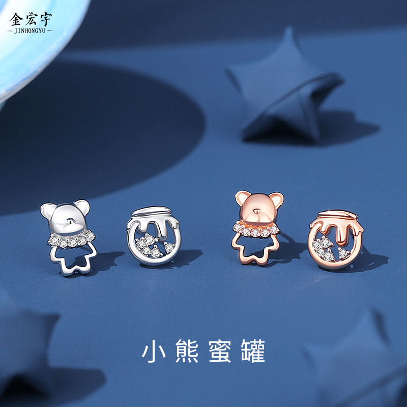 日韓甘さins非対称デザイン感925銀針熊と愛のピアス生放送イヤリング