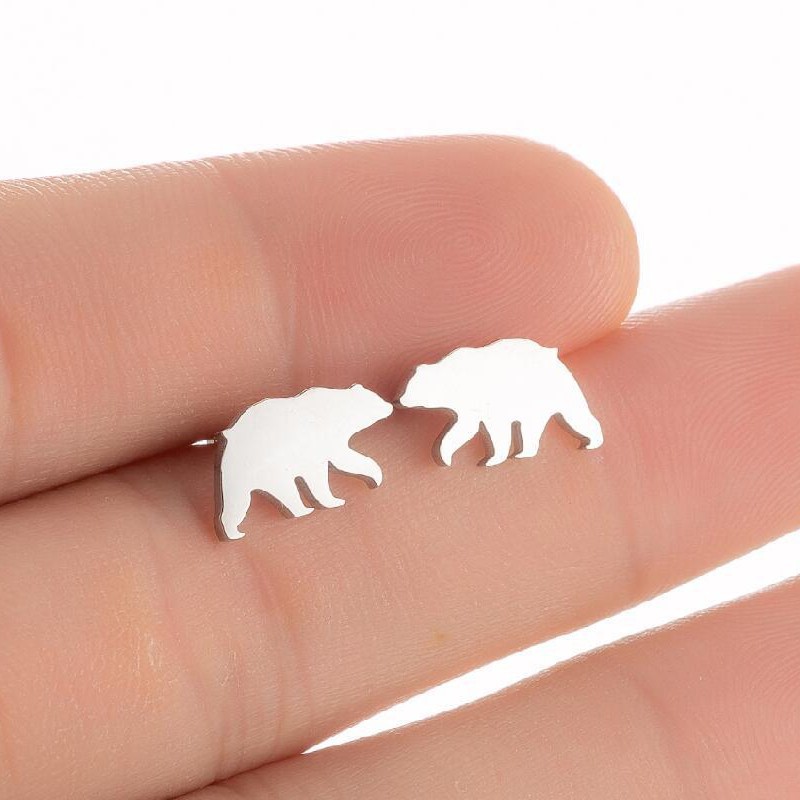 速売通ins風個性ステンレス小動物ピアス韓国新型かわいいホッキョクグマ熊ピアス女