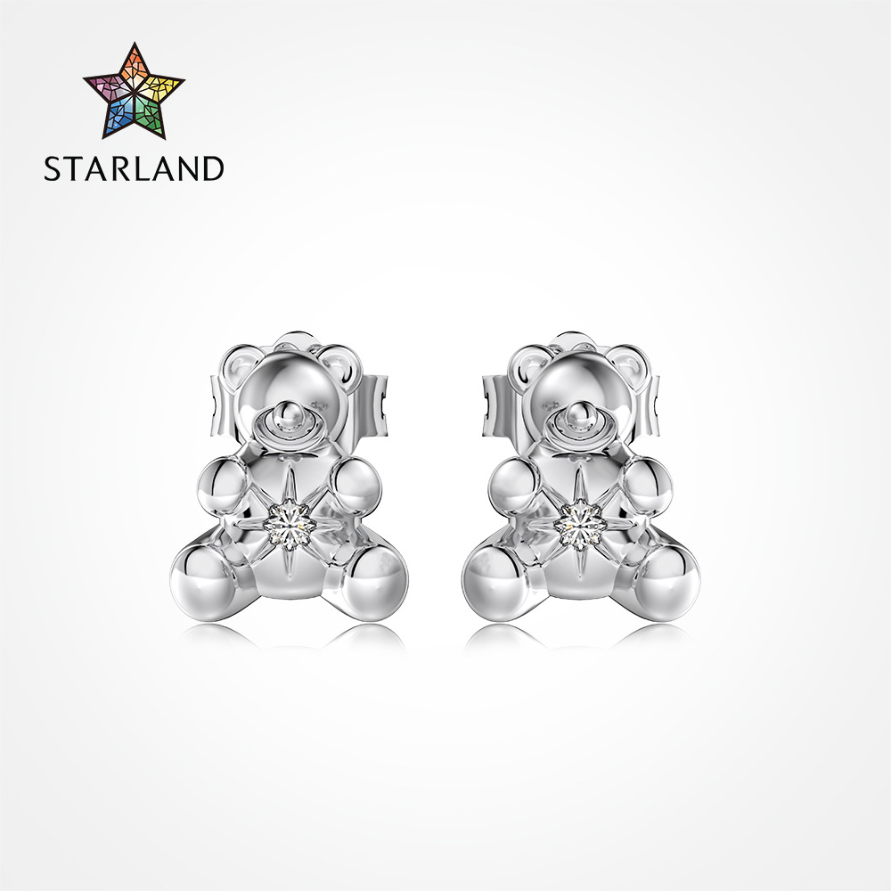 桃糸熊925銀テディベアピアスの個性がかわいい子熊ピアス欧米の国境を越えたメーカー卸売り