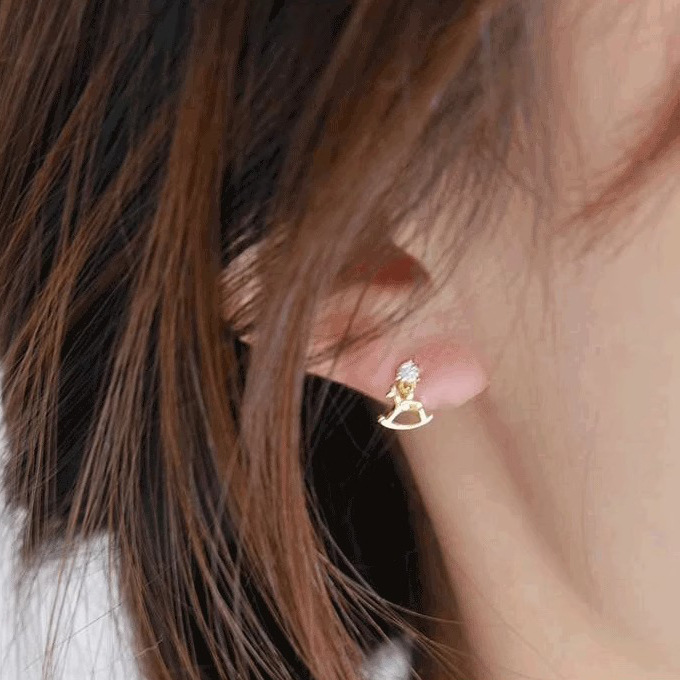 かわいい韓国の子供の趣味の小さい木馬のピアスの女性の大衆のデザイン感のイヤリングの学生の通勤の小さいジルコンの耳飾りの潮