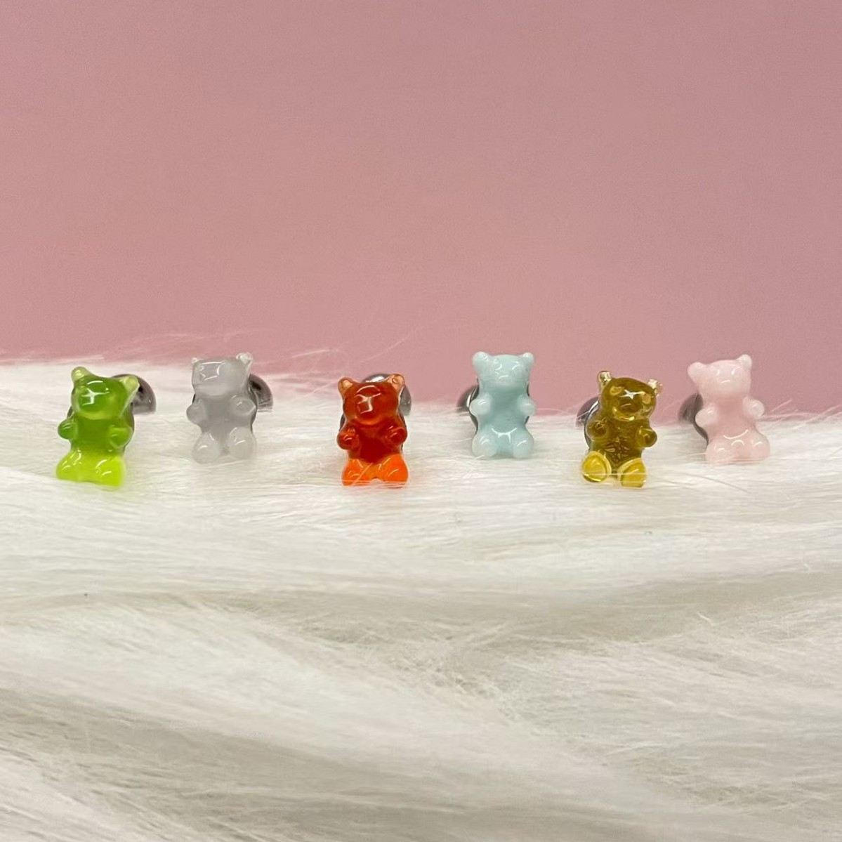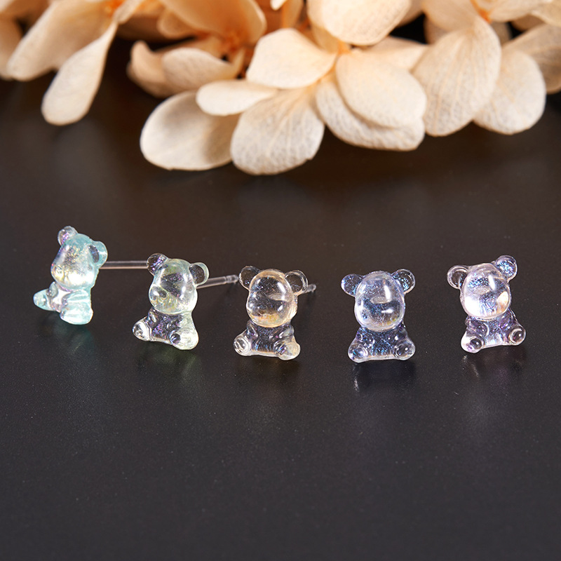 小清新は耳の穴の熊のピアスの漫画のアイデアのアクリルの動物のイヤリングのキャンディーの色を養います。
