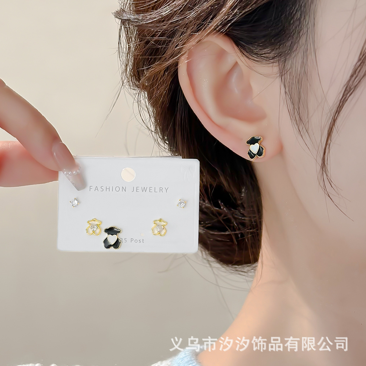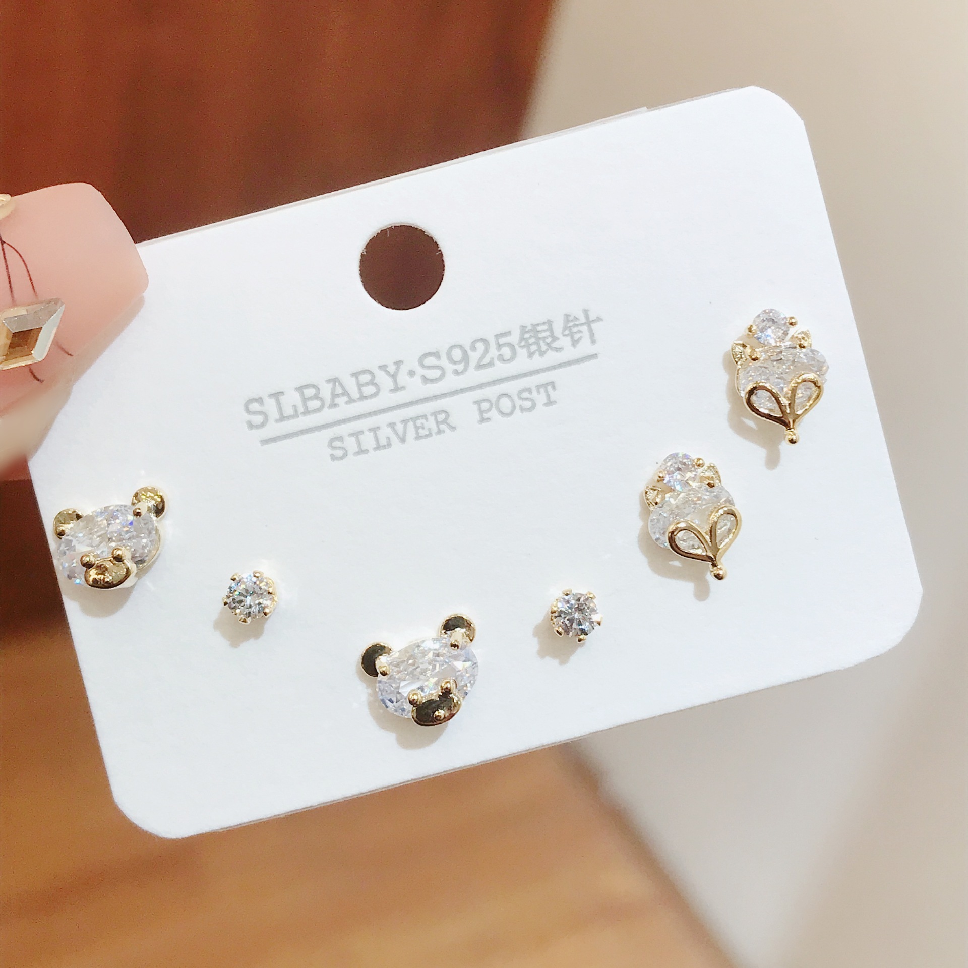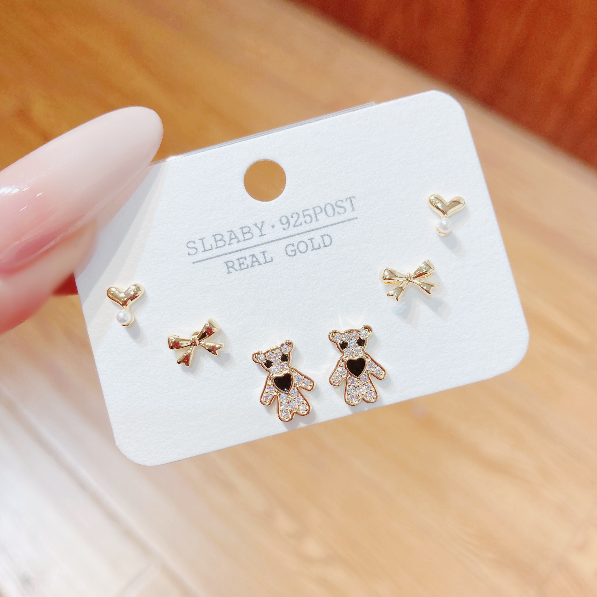 気質のかわいいアニメの熊の3対のピアスの女性のs925銀の針の小さい大衆のデザイン感の通勤の耳飾りの卸売り
