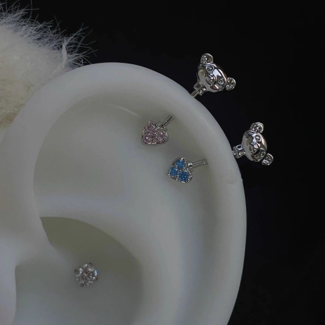 幻彩ジルコンハート型の熊のピアスの女性が可愛いです。