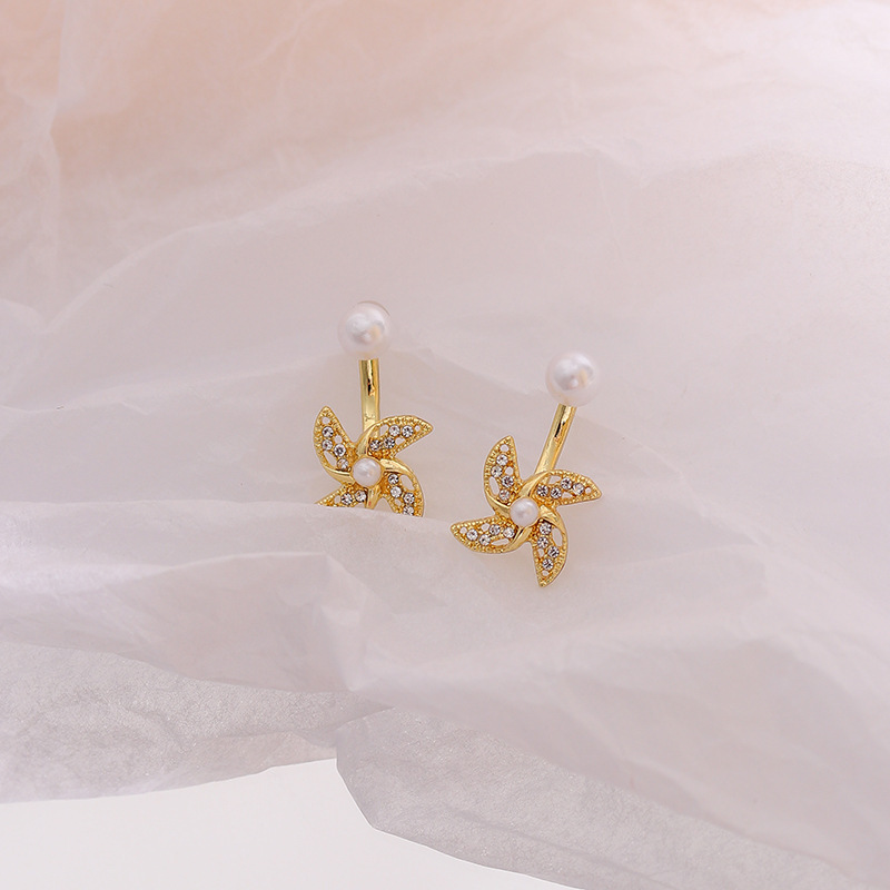 新型の小さい風車のピアスの女性は簡単で、銅の銀のイヤリングのファッションの韓国版のミニ風車のイヤリングのアクセサリーを合わせます。