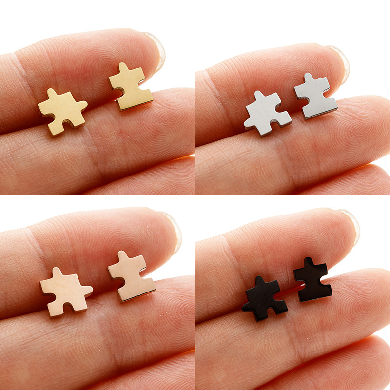 ステンレスパズルピアスins個性ファッションアクセサリー四色非対称小衆耳飾りクロスボーダー卸売り