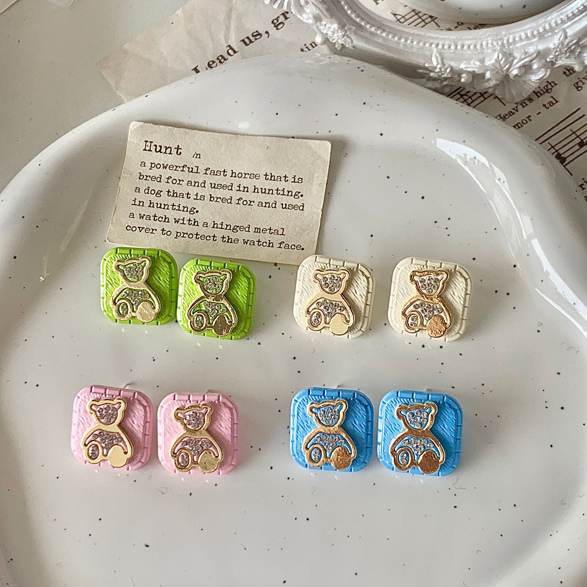 韓国版熊の四角のイヤリングの甘い少女のかわいい春夏のピアスs 925銀の針はダイヤモンドの漫画のネットの赤い耳飾りを入れます。