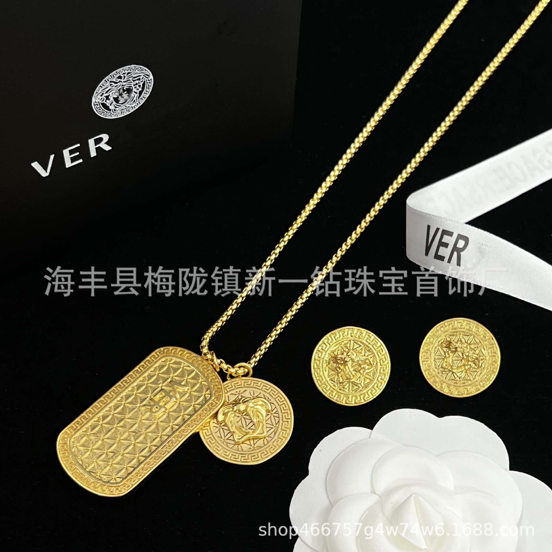 范家レトロ美杜莎の頭の盾のネックレスのヒップホップの男女の黄銅の金メッキの迷宮のピアスの高級感のイヤリング