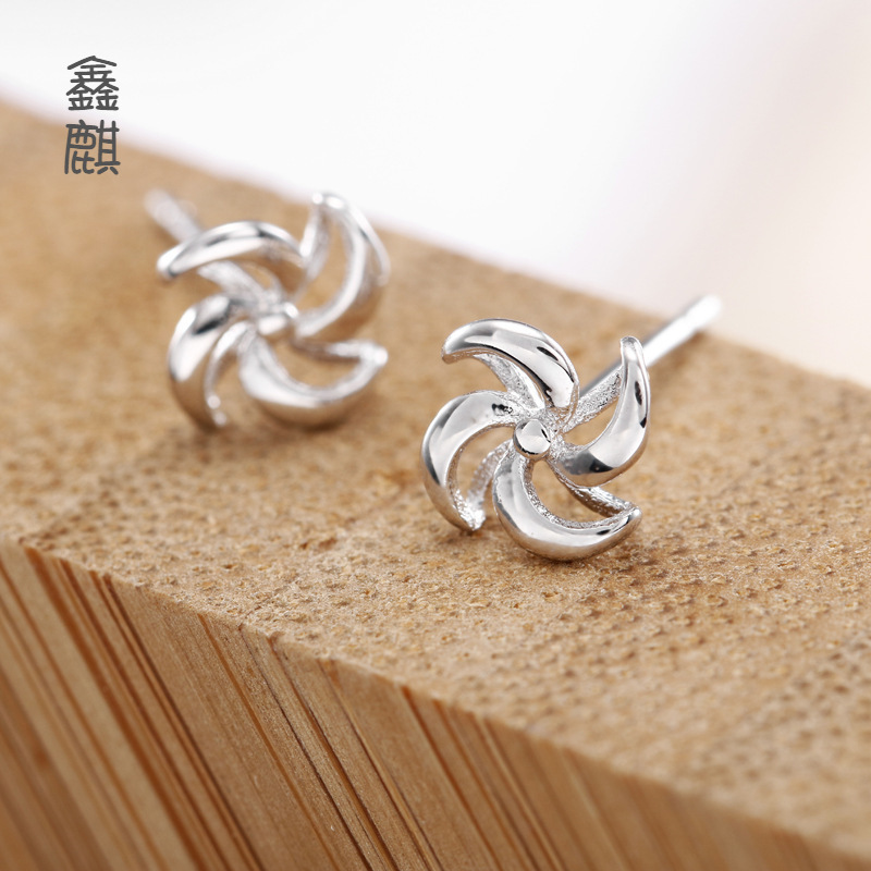 S925銀針韓国童話回転風車夏の大衆デザイン感ピアス女性