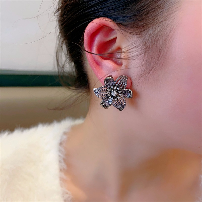 レトロで優雅なジルコン風車の花のイヤリングS925銀針の甘いピアス