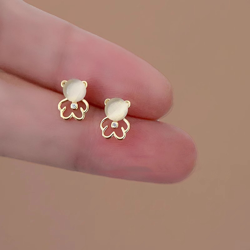 かわいい模造キャッツアイクマのイヤリング女性のための夏の新しいトレンディなイヤリングニッチデザイン中空動物イヤリング