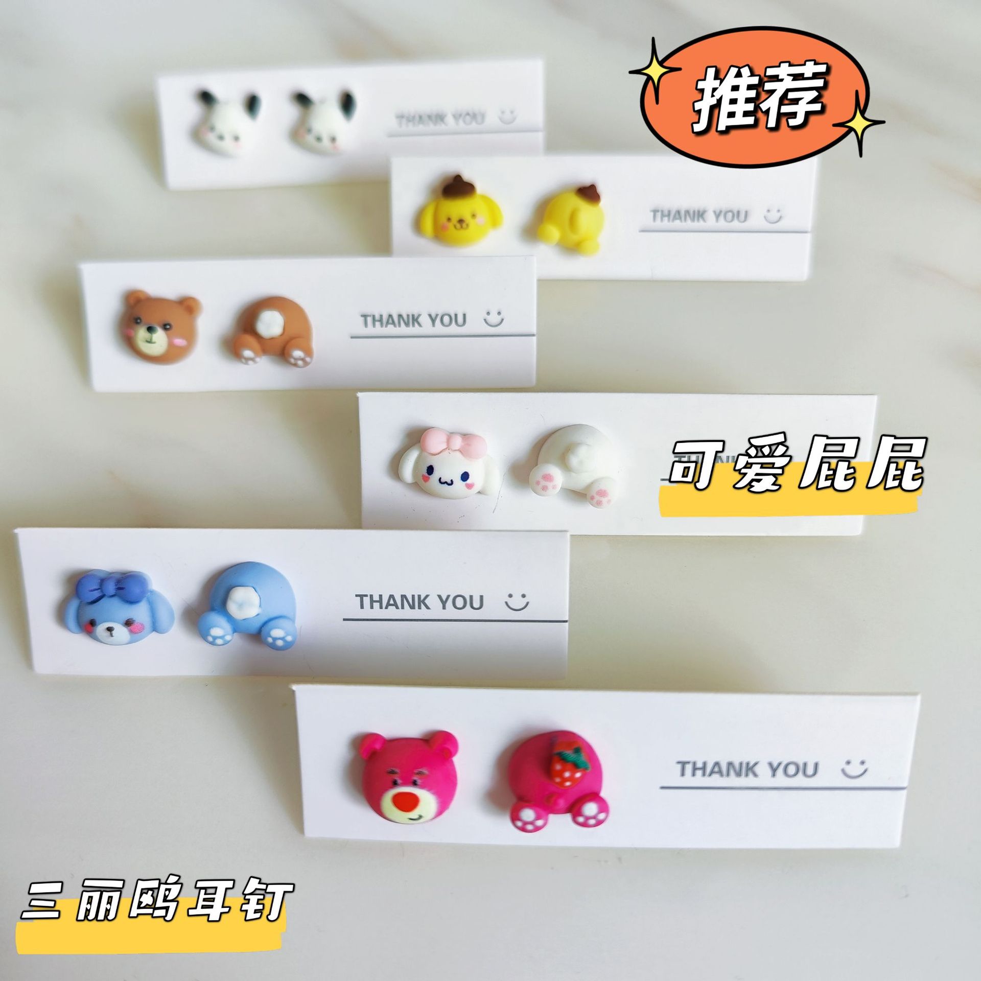 925銀針サンリオピアス日系かわいいいちご熊甘い学生アニメ耳クリップパチャ犬耳飾り