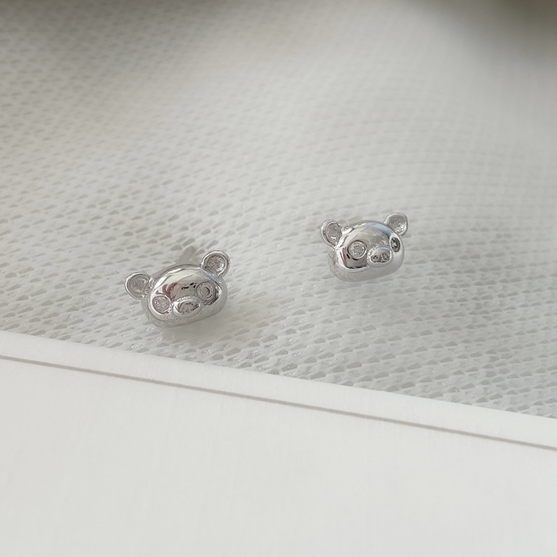 925銀耳針イヤリング小柄な女性シンプルなピアス玉面狐熊韓国版高品質耳飾り卸売り