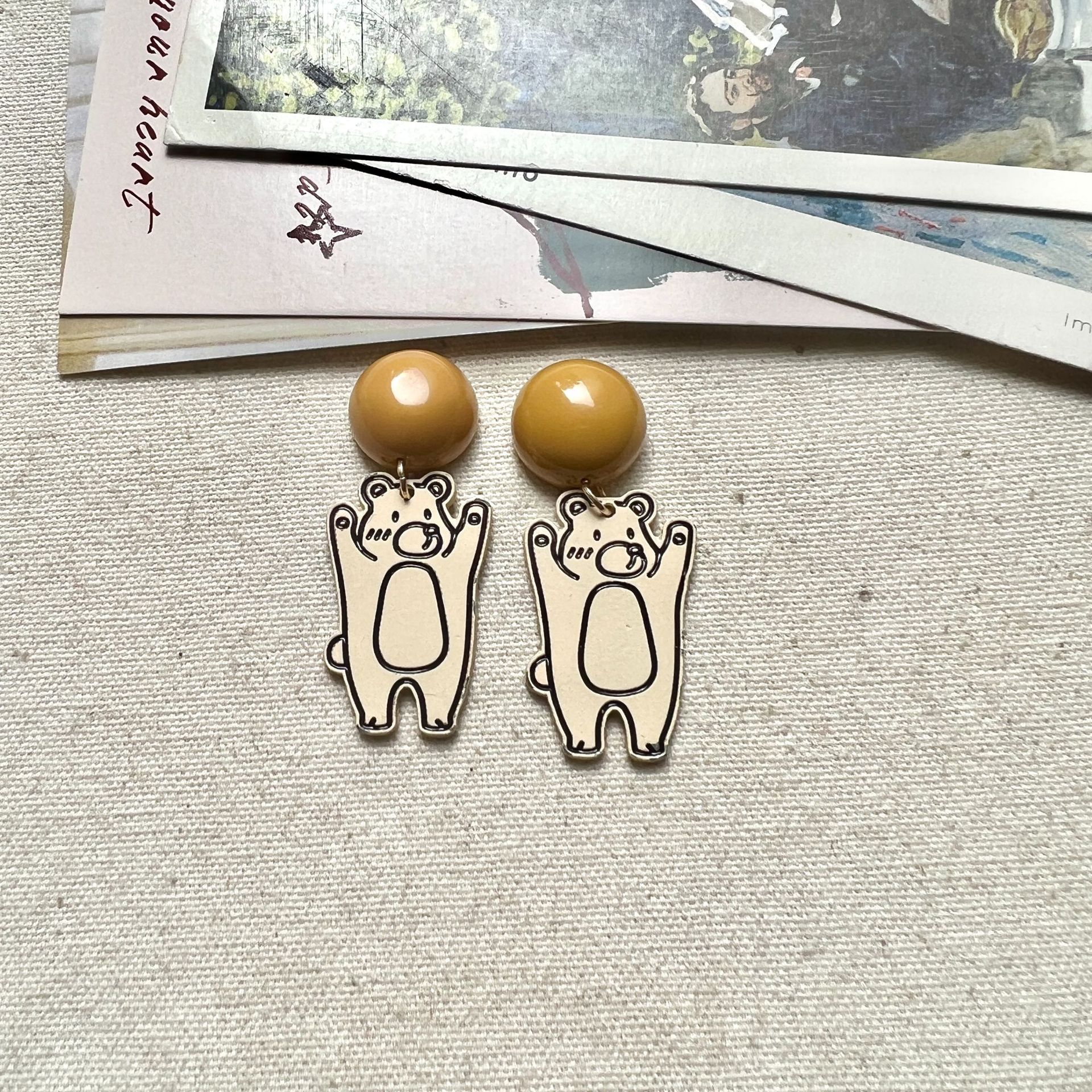 新しいバターベアハニービーフラワーイヤリング樹脂イヤリング低刺激性かわいい小さくて甘い子供のようなイヤリング