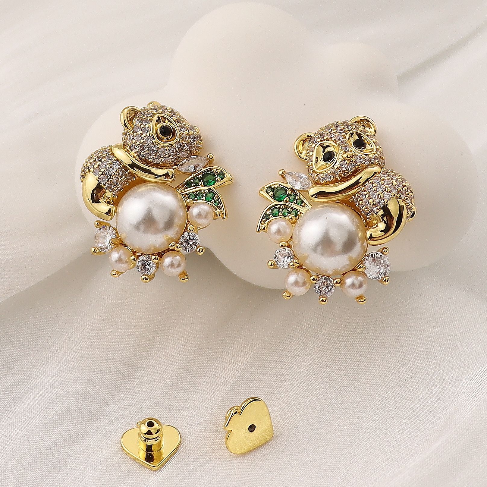 新型ファッション軽豪華通勤モザイク超フラッシュドリル動物系かわいいベアーデザイン金属ピアス