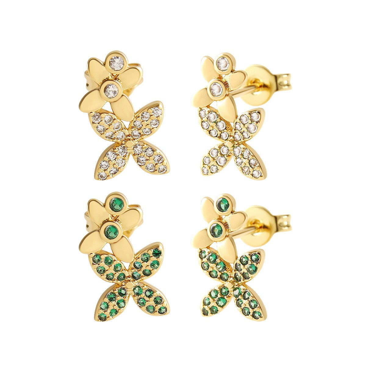 新しいジルコンピアス韓国版高級感名媛風車花イヤリング真金メッキファッション花びらイヤリング女