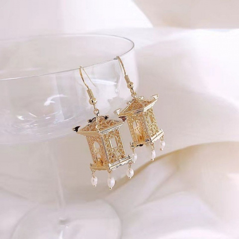 S925スターリングシルバー赤ジルコン孔明ロックピアス小众高级感冷たい风イヤリング中国风レトロ耳饰り