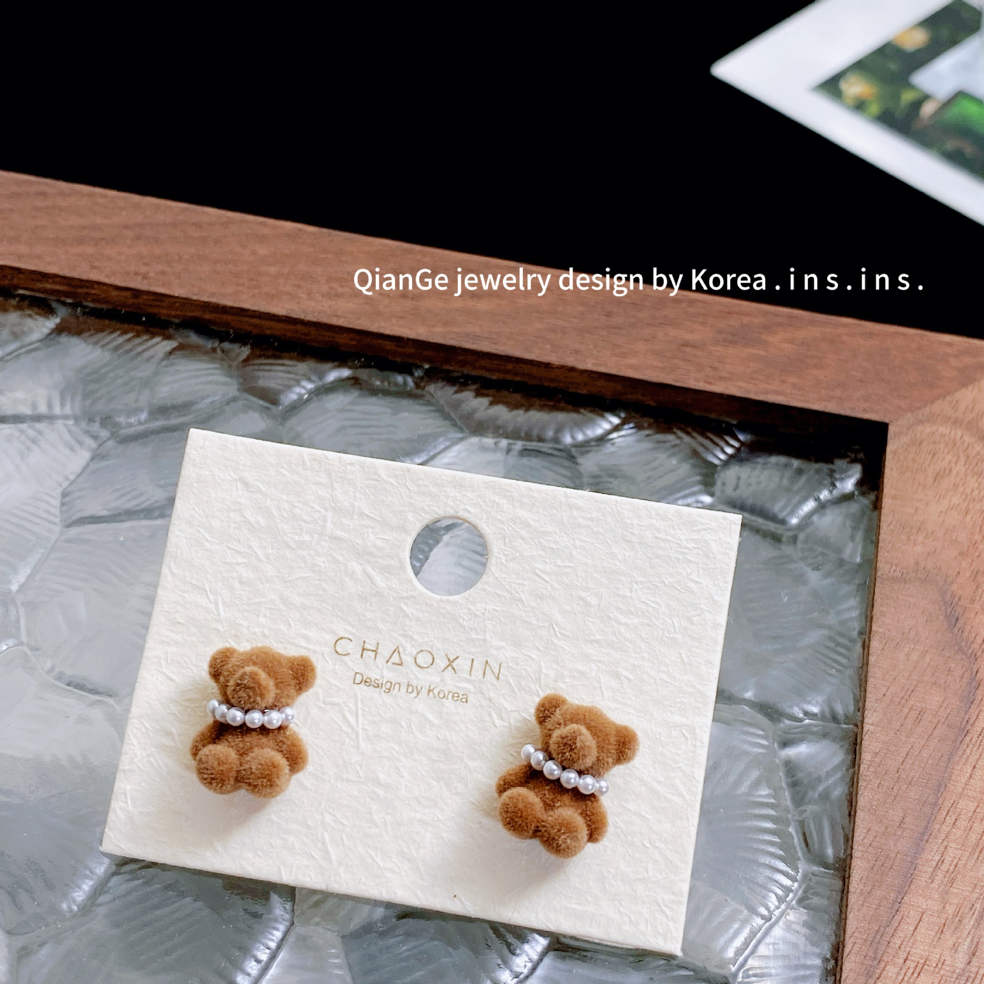 超新秋冬かわいい植毛真珠熊ピアス女s 925銀針韓国版ins甘いアニメイヤリング