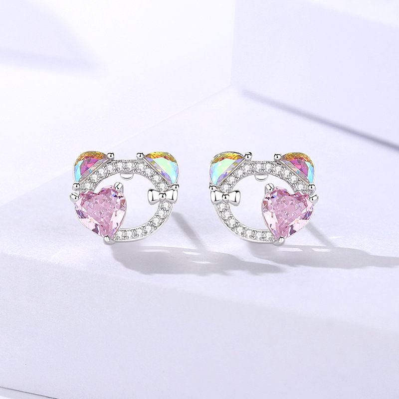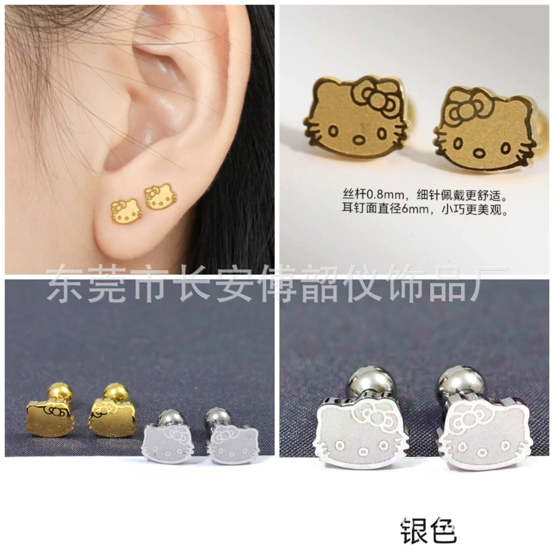 日韓版アニメファッションkt猫ピアスケイティkitty猫ピアス女メッキ925銀アクセサリー卸売り代発