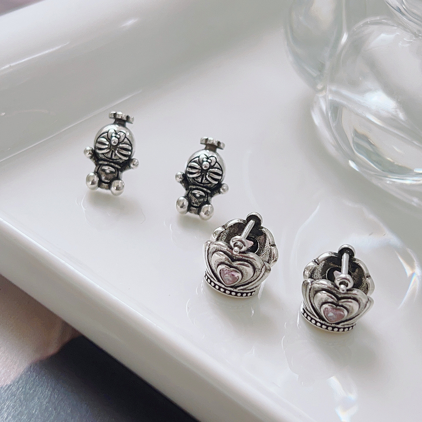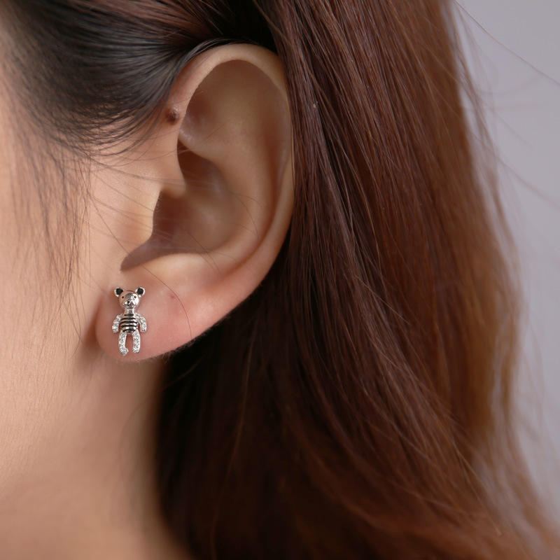 S925銀針日韓シンプル気質アニメ熊ピアス女小型新型かわいいネット赤イヤリング女耳飾り