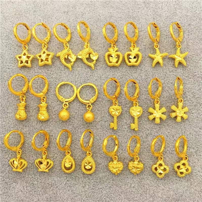 ゴールドストアと同じスタイルのサンドゴールドイヤリング、真鍮金メッキイルカイヤリング、五芒星の光沢のあるイヤリング、ウェディングイミテーションゴールドジュエリー