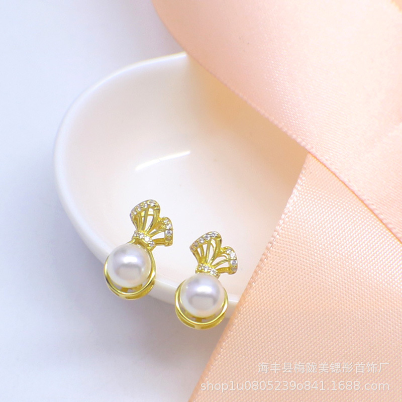 Diy真珠の部品の厚い金メッキのマイクロはジルコンの銀耳の針のお金の袋の金のファッション的なイヤリングのイヤリングのイヤリングの耳の空の托を入れます。